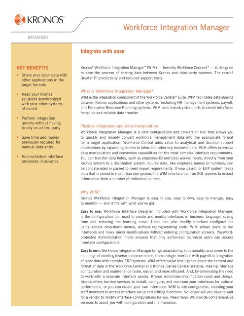 Workforce Integration Manager Datasheet